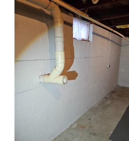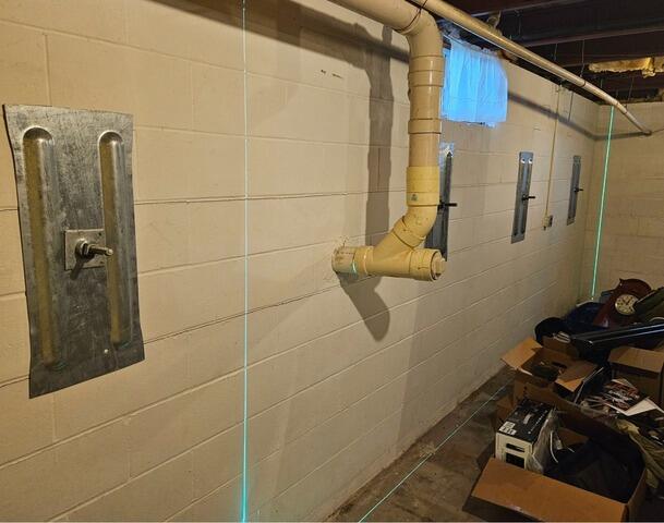Block Foundation with Visible Cracking and Bowing Permanently Stabilized and Repaired with Wall Anchors in Dorchester, WI