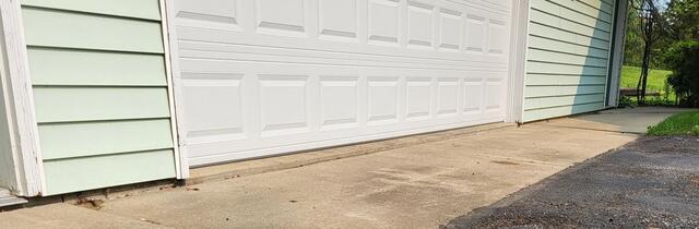 In Waupaca, this homeowner had issues at both their attached and detached garage aprons. Over time, the concrete in front of each garage had sunk, creating a noticeable dip that made driving in and out frustrating—and even a little risky. Open joints were also letting in water, which only made the settling worse with each freeze-thaw cycle.