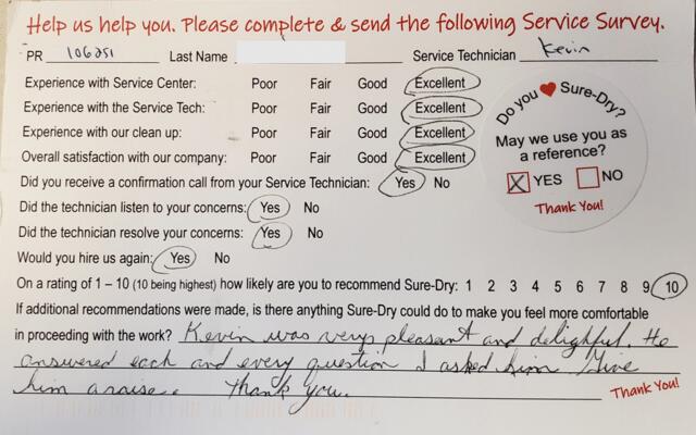 Very very professional and friendly workmen. Sure-dry would be very smart to keep them in your organization. Very pleased with the results and would recommend Sure-Dry to anyone in need.