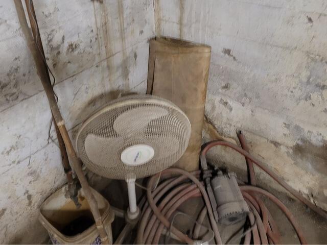 A homeowner in Waupun, WI was dealing with a chronically wet basement. After heavy rain, water entered along the cove joint where the floor met the wall, pooling several feet into the space. The block foundation showed signs of seepage and mineral staining, and the existing sump system could not keep up—leaving standing water and damp air that threatened storage and air quality.