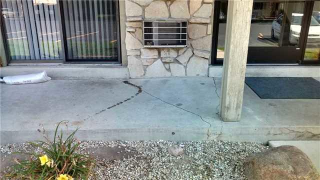 From water entering below the concrete slab and washing out the soil, the concrete slab supporting the second-floor balcony begins to sink and crack. If this problem is left unattained it can lead to further damage.