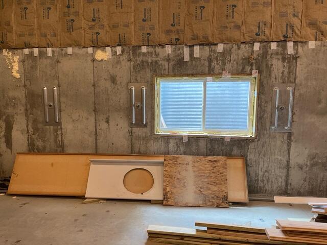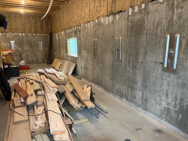 The block foundation walls of this home in Bancroft, WI were bowing inward due to hydrostatic pressure from the surrounding wet soil.