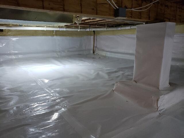 To solve the problem, we recommended our CleanSpace® crawl space encapsulation system. Our experienced production team installed a durable 20-mil CleanSpace liner throughout the crawl space. This thick, reinforced barrier is designed to block ground moisture and help prevent mold and mildew, creating a cleaner and drier space beneath the home.