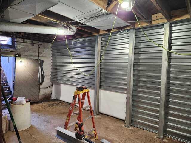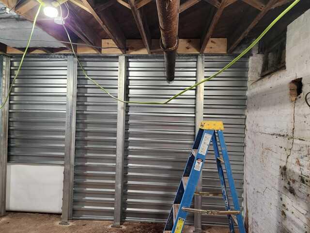 We proposed the installation of our innovative PowerBrace™ System to stabilize and reinforce the affected foundation walls. Our production team, comprised of a proficient foreman and trained installers, executed the installation process meticulously. Each zinc-plated steel beam was custom-fit to the specific height of the basement and securely fastened with precision-engineered brackets. These brackets were carefully anchored to the basement floor below and the first-floor framing above. This process necessitated precise attention to detail to ensure optimal efficiency and safety, eliminating the need for any invasive drilling or digging.