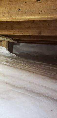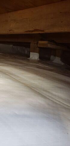 Sure-Dry encapsulated the crawl space using CleanSpace® vapor barrier to fully isolate the area from ground moisture and reduce humidity infiltration. The durable vapor barrier was securely fastened and sealed along seams, piers, and foundation walls to create a continuous protective layer across the crawl space.