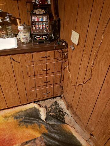Water was finding its way into this basement in Dorchester, WI, and damaging the wood studs and drywall of the finished walls.