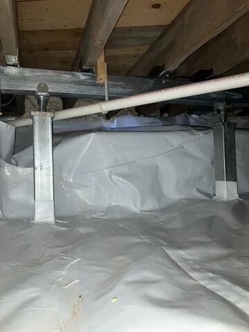 The Sure-Dry crew installed a series of SmartJack steel supports beneath the sagging beams. Each jack was set on a solid engineered base designed to prevent further sinking and adjusted precisely to restore the floors to their proper level. The SmartJack system is corrosion-resistant, adjustable for future maintenance, and provides long-term stability for the home’s structure. After installation, the homeowner noticed an immediate improvement—the floors felt solid again, and the overall structure was stronger and more secure.