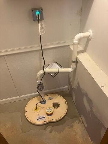 During the inspection in Eland, WI, the System Design Specialist identified continuous seepage along the foundation footing and confirmed that the existing sump pump was underperforming during groundwater surges. To establish reliable drainage, the specialist recommended installing WaterGuard® along the affected walls and upgrading the pump system with a SuperSump® capable of handling seasonal peaks. Because the home was subject to freezing discharge conditions, an IceGuard® fitting and a buried discharge line were added for freeze-resistant water removal.