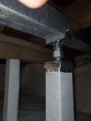 Next, we installed the SmartJack® Joist Repair System to support the sagging floor joists. Strong steel posts were placed under the affected areas and adjusted to stabilize the floors. This helped reduce floor bounce and added much-needed strength to the home’s structure.