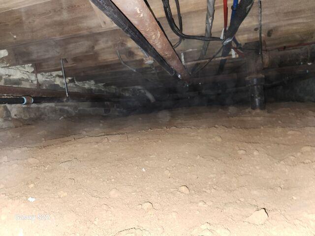 The crawl space had exposed soil, musty odors, and seasonal puddling in low spots. Humid air was moving into the home, leaving floors cold and raising concerns about mold and wood rot. The area lacked insulation and a reliable way to manage water during storms.