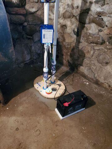 To ensure their basement would continue to be protected from water in the event of a power outage, Sure-Dry installed their battery backup UltraSump® system. The UltraSump® system can pump out in excess of 11,500 gallons of water on a fully charged battery, which is enough water to fill a small swimming pool!