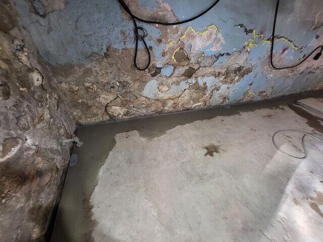 During inspection, we found active seepage at multiple wall-floor joints and mineral staining that showed a long-standing issue. The solution was a perimeter capture system that works below the slab and away from dirt and clogs.
