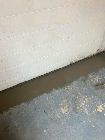 During the inspection in Antigo, WI, the System Design Specialist documented active seepage at the cold joint and confirmed that water was concentrating along one wall before spreading across the basement floor. The existing sump pump lacked the performance needed to manage peak groundwater flow. To create an effective collection path, the specialist recommended installing WaterGuard® along the affected wall, paired with a SuperSump® upgrade. A bleeder line was added to intercept water entering through the wall and ensure it fed directly into the WaterGuard system.