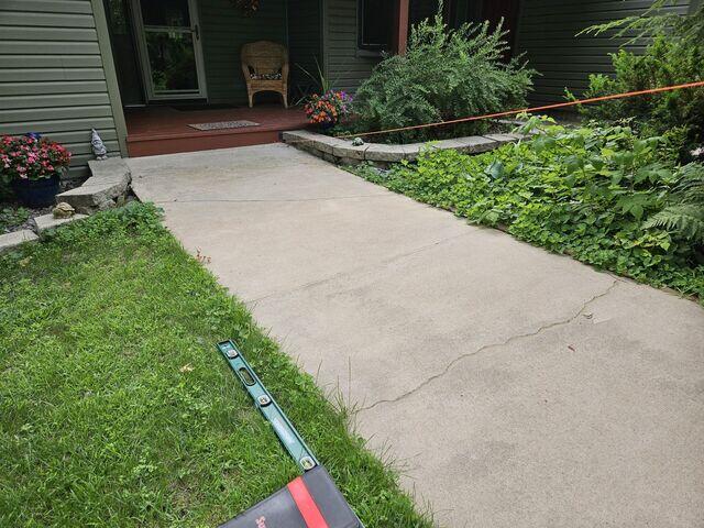 In Gleason, a homeowner noticed their driveway and front walkway had sunk in several spots. The uneven edges were becoming a trip hazard, and after rain, water pooled near the garage door instead of draining away. With Wisconsin’s freeze–thaw cycles, the issue was getting worse each season.
