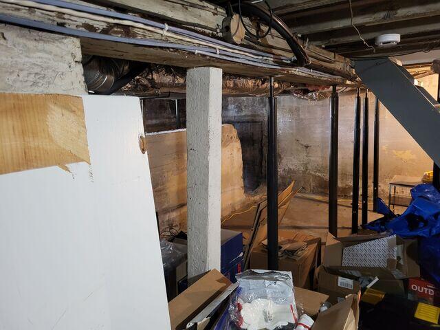 The homeowner in Little Chute, WI reported sagging floors on the main level, along with concerns originating from the basement. During the inspection, the foundation walls showed signs of inward movement and reduced structural rigidity, which affected proper load transfer and contributed to floor deflection above. These conditions are common in Wisconsin homes where long-term soil pressure and wall movement impact overall structural performance.