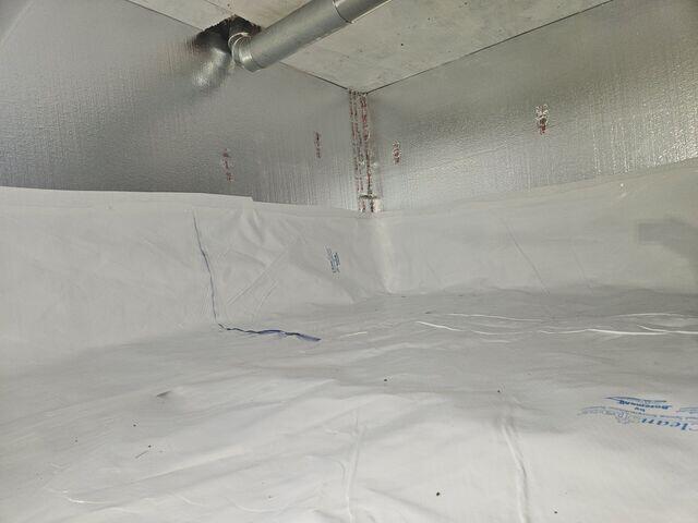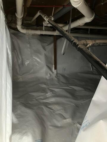 During inspection, Sure-Dry identified significant moisture and temperature variations in the crawl space due to unsealed floors and uninsulated foundation walls. To resolve the issue, the crew installed the CleanSpace® liner across the entire crawl space floor and walls, creating a durable vapor barrier that locks out humidity and prevents moisture intrusion. SilverGlo® insulation panels were then fitted along the perimeter walls to reflect heat back into the living space and reduce energy loss.