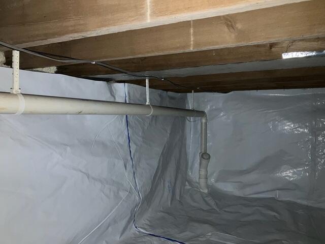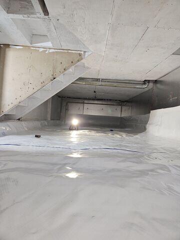 To solve this home's crawl space problem, Sure-Dry Basement Systems installed their CleanSpace® Crawl Space Vapor Barrier System. This durable, bright white crawl space liner installs on the walls and floors, preventing water vapor and humidity from passing through. By keeping your crawl space dry, you protect your structure and insulation from mold and rot.