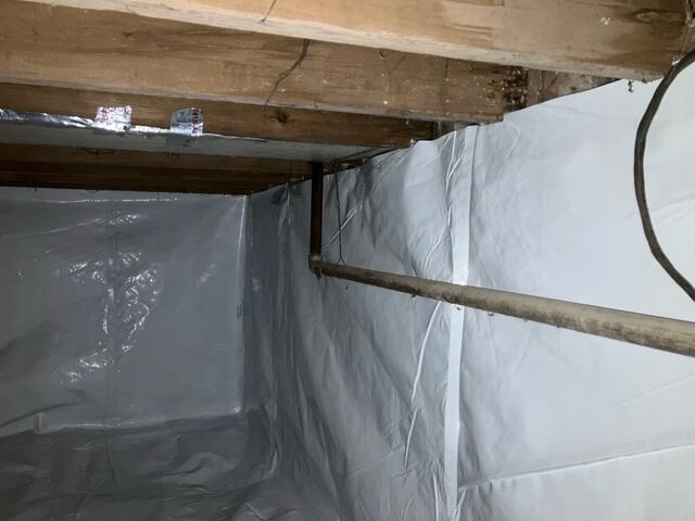 During inspection we documented elevated RH and air movement from the crawl space into the living areas. Our crew prepped the substrate, laid and mechanically fastened CleanSpace® to separate the home from ground moisture, and wrapped supports for a continuous seal. We then fitted SilverGlo® on the crawl space walls, fastening and sealing seams to boost R-value and stabilize temperature. With moisture blocked and insulation in place, the first-floor rooms feel warmer and the air smells fresher—delivering long-term protection without altering the living space above.
