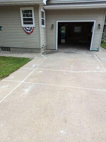 During the inspection, our Sales – System Design Specialist evaluated the driveway and identified soil compression beneath several slabs as the cause of the settlement, a common issue in Marinette and throughout Northeast Wisconsin. Drainage patterns were reviewed to ensure water would be directed away from the garage once the concrete was properly leveled. Based on the condition of the driveway, concrete lifting and joint sealing were recommended instead of full replacement.