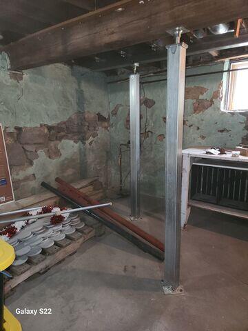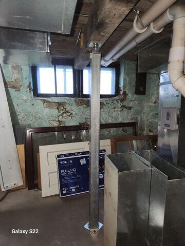 Installation involved preparing reinforced footings, setting the steel support posts, and carefully adjusting them to restore proper beam alignment. The work was completed efficiently with minimal disruption to the home while delivering immediate improvement in floor stability.