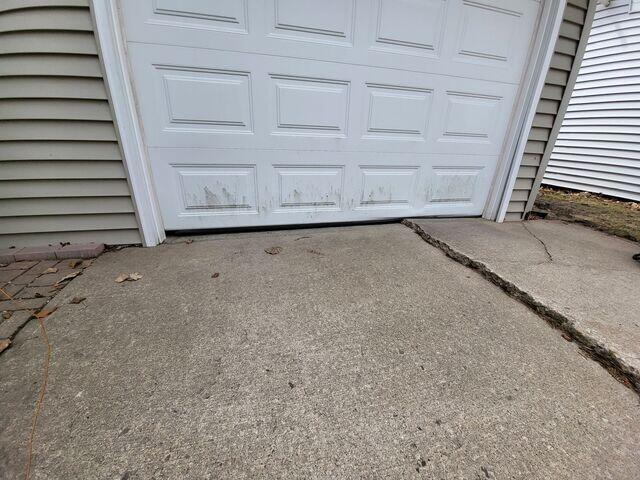 During the winter evaluation, the System Design Specialist accounted for snow cover by using a level and measurement tools to verify elevation differences and identify settlement patterns at the garage entrance. Despite limited visibility, the data confirmed active slab settlement requiring correction. Based on access, slab condition, and timing, a spring installation plan was developed using PolyLevel® as a minimally invasive solution.
