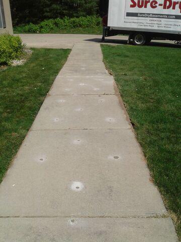 Installation involved injecting high-density polyurethane beneath the settled sidewalk sections to achieve controlled lift and long-term stabilization. The work was completed efficiently with minimal disruption to the surrounding concrete and immediate usability of the walkway.
