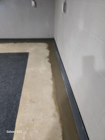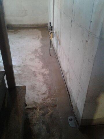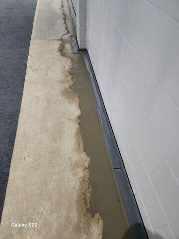 During inspection, we identified active seepage paths at the cove joint and noted mineral staining where previous leaks had occurred. The installation team removed a narrow strip of the perimeter slab and set the WaterGuard® drainage channel along the footing, designed to capture groundwater before it reached the floor.