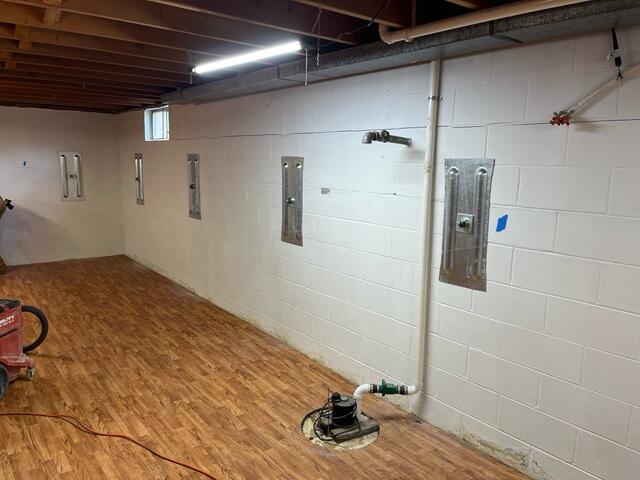 In Oconto Falls, repeated storms left a homeowner with damp edges along the basement floor and visible moisture wicking through the lower wall. Boxes were moved off the slab, a dehumidifier ran constantly, and every thunderstorm raised the same worry: “Will the pump keep up if the power blinks?”