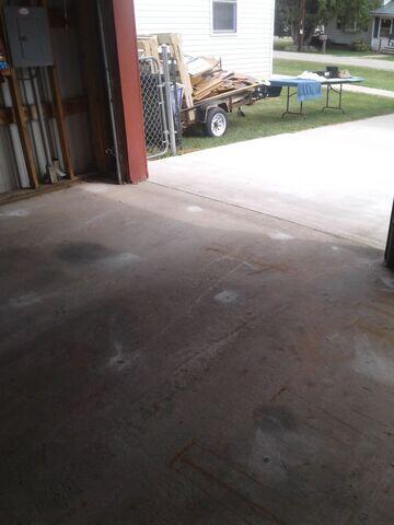 During inspection, we mapped settlement across the garage slab and located areas of hollow sound beneath the surface, indicating lost soil support. After confirming adequate slab thickness, small ⅜-inch injection holes were drilled in a controlled pattern, and PolyLevel® foam was injected to reestablish uniform bearing.