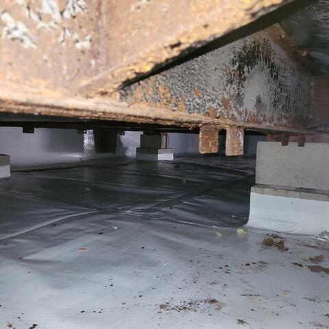 Our team recommended CleanSpace® encapsulation to separate the house from the earth. We prepared the substrate, laid CleanSpace® across the crawl space floor, and ran the liner up the walls to create a sealed envelope. Support piers were wrapped, and all seams were carefully sealed; then the liner was mechanically fastened to keep it tight and secure. This continuous barrier helps keep moisture out of the structure and reduces the conditions that lead to odors and wood deterioration.