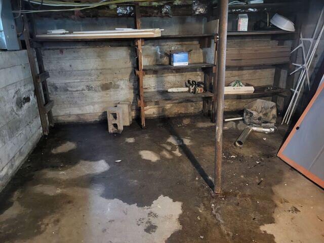 Upon completion, the hunting shack's basement was transformed from a water-prone area to a dry, secure foundation.