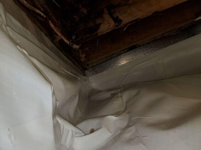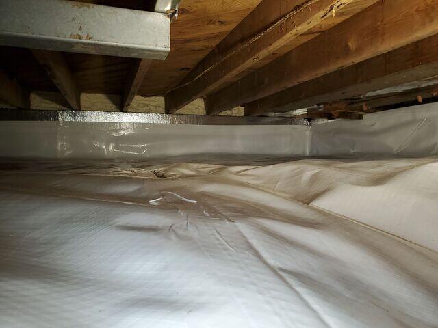 After prepping the substrate, we installed CleanSpace® across the floor and up the walls, wrapping support piers and mechanically fastening the liner for a tight, durable seal. We then fitted SilverGlo® insulation continuously along the crawl space walls to boost R-value and help stabilize temperature. To address drafts, we sealed the perimeter with RimTight™ at the rim joists and around penetrations.