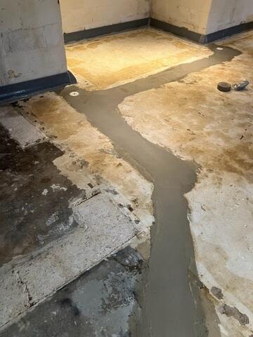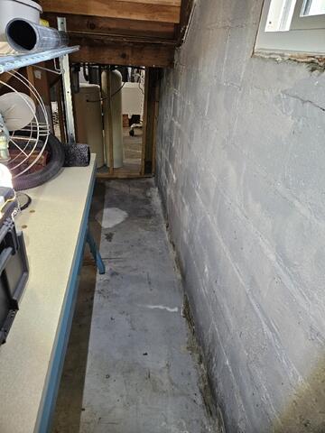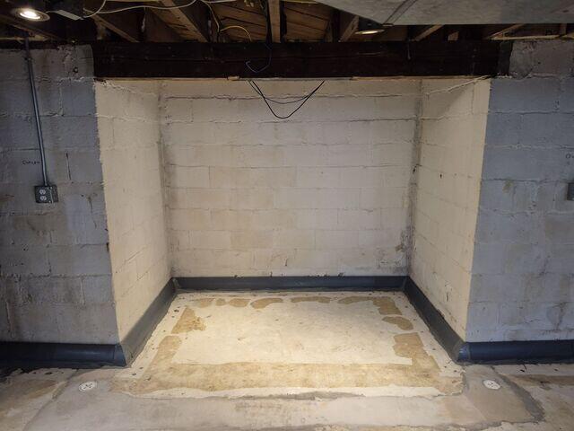 During inspection, Sure-Dry’s System Design Specialist determined that the foundation type made traditional trenching for a below-floor drain impractical. To achieve effective waterproofing without disrupting the basement slab, the team recommended a DryTrak® Baseboard Drain System. Installed along the perimeter where the wall meets the floor, the system channels any wall or floor joint seepage directly into a newly installed SuperSump®. The sump pump efficiently removes the collected water through a discharge line positioned to drain safely away from the home.