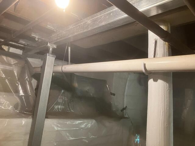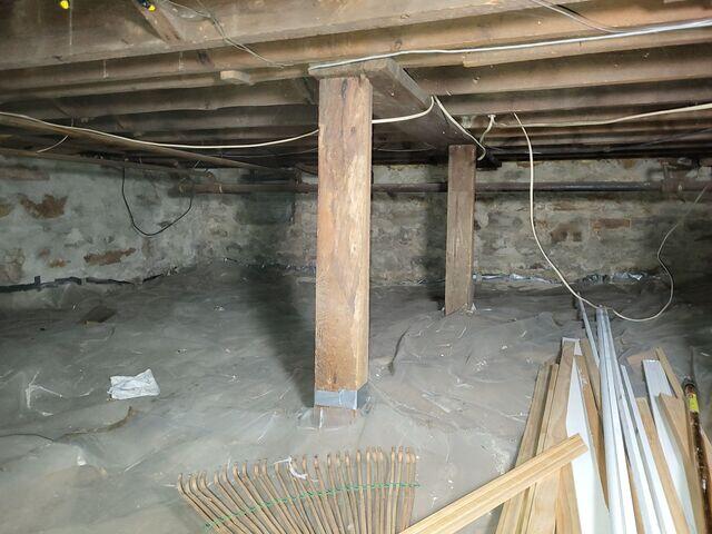 The Sure-Dry crew excavated and prepared stable footing locations, installed galvanized steel SmartJack posts on engineered base plates, and made precision adjustments to level the floor system. The result was a secure and permanently stabilized crawl space structure that eliminated uneven flooring and stopped further settlement. The homeowner gained lasting confidence knowing their home’s foundation is now fully supported and structurally sound.