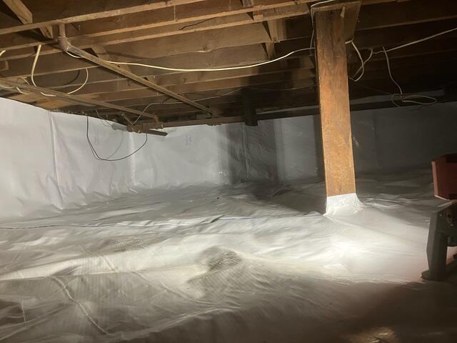 The installation team cleaned and prepared the crawl space, then applied CleanSpace along the floor and walls, sealing every seam and penetration to create a continuous moisture barrier. This solution stabilized humidity levels and improved overall comfort in the home above. Following the project, the homeowners immediately noticed warmer floors, fresher air, and lasting peace of mind knowing their crawl space is now fully protected.