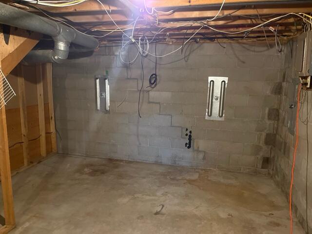 A System Design Specialist inspected the Stevens Point basement and documented a horizontal fracture with visible bowing along the mid-span of the west wall. Laser-level readings showed measurable inward displacement, while seasonal soil expansion—common in Portage County—was contributing to increased lateral loading. The inspection also confirmed that the wall was still actively moving, making a rigid, adjustable reinforcement system the appropriate solution.