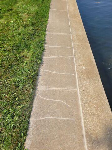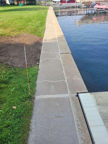 During the evaluation, a Sure-Dry System Design Specialist assessed slab settlement, shoreline soil conditions, and water exposure patterns along the sidewalk near the dock. Measurements confirmed that ongoing moisture saturation and erosion had created voids beneath the concrete, making lifting and joint sealing the most effective long-term solution.