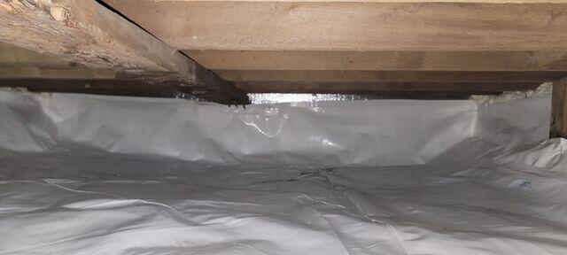 During the crawlspace evaluation, a Sure-Dry System Design Specialist assessed moisture levels, insulation gaps, and airflow paths contributing to humidity and temperature loss. Findings confirmed that vapor intrusion and lack of wall insulation were driving the crawlspace issues.