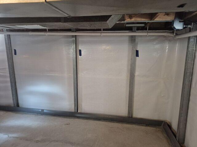 During inspection, Sure-Dry’s System Design Specialist found that the basement’s water intrusion was limited to wall seepage and high humidity rather than surface flooding. While CleanSpace® is commonly installed in crawl spaces, it was selected here as the most effective wall encapsulation solution due to its ability to block vapor transfer and guide any seepage into the existing drainage system.