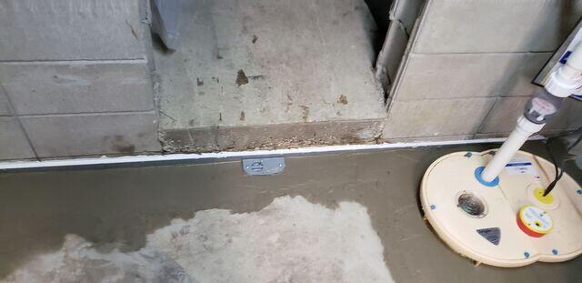 During inspection, Sure-Dry’s System Design Specialist determined that the foundation type made traditional trenching for a below-floor drain impractical. To achieve effective waterproofing without disrupting the basement slab, the team recommended a DryTrak® Baseboard Drain System. Installed along the perimeter where the wall meets the floor, the system channels any wall or floor joint seepage directly into a newly installed SuperSump®. The sump pump efficiently removes the collected water through a discharge line positioned to drain safely away from the home.